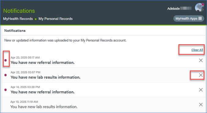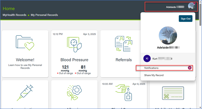 When you are using your My Personal Records, you will see notifications for any new or updated data from provincial sources, such as Alberta Netcare.